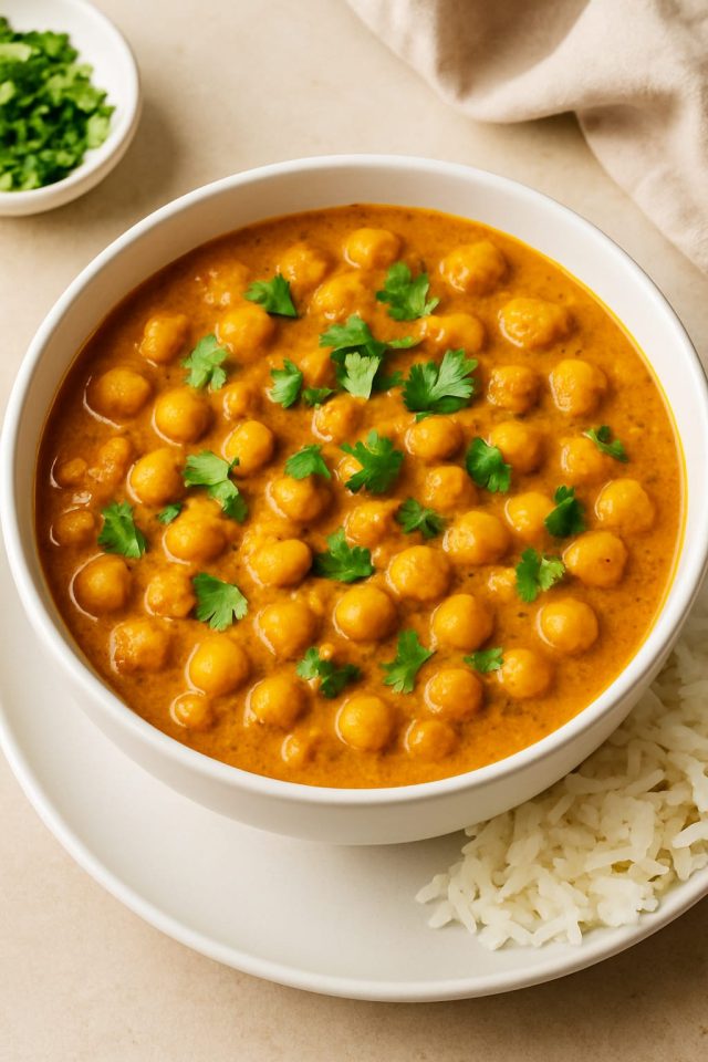 For a creamy vegan chickpea dish, start by sautéing one finely chopped onion in a splash of olive oil over medium heat until translucent. Add three minced garlic cloves, a teaspoon each of ground cumin, coriander, and smoked paprika, and cook for another minute until fragrant. Stir in two cups of cooked chickpeas (or one drained can), and let them absorb the spices for a couple of minutes. Then, pour in one cup of coconut milk and half a cup of vegetable broth, bringing the mixture to a gentle simmer. Let it cook for about 10–15 minutes until the sauce thickens and becomes creamy. Stir in a handful of chopped spinach or kale for extra color and nutrition, cooking just until wilted. Finish with a squeeze of lemon juice, salt and pepper to taste, and optionally a sprinkle of fresh cilantro. Serve warm over rice, couscous, or with crusty bread for a hearty, comforting meal.